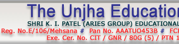 Administrative Office : The Unjha Education Board Shri K. I. Patel (Aries Group) Educatinal Opp. Marketyard, Unjha - 384170 North Gujarat India Phone : +91 2767 253924 Mobile : +91 94297 40041